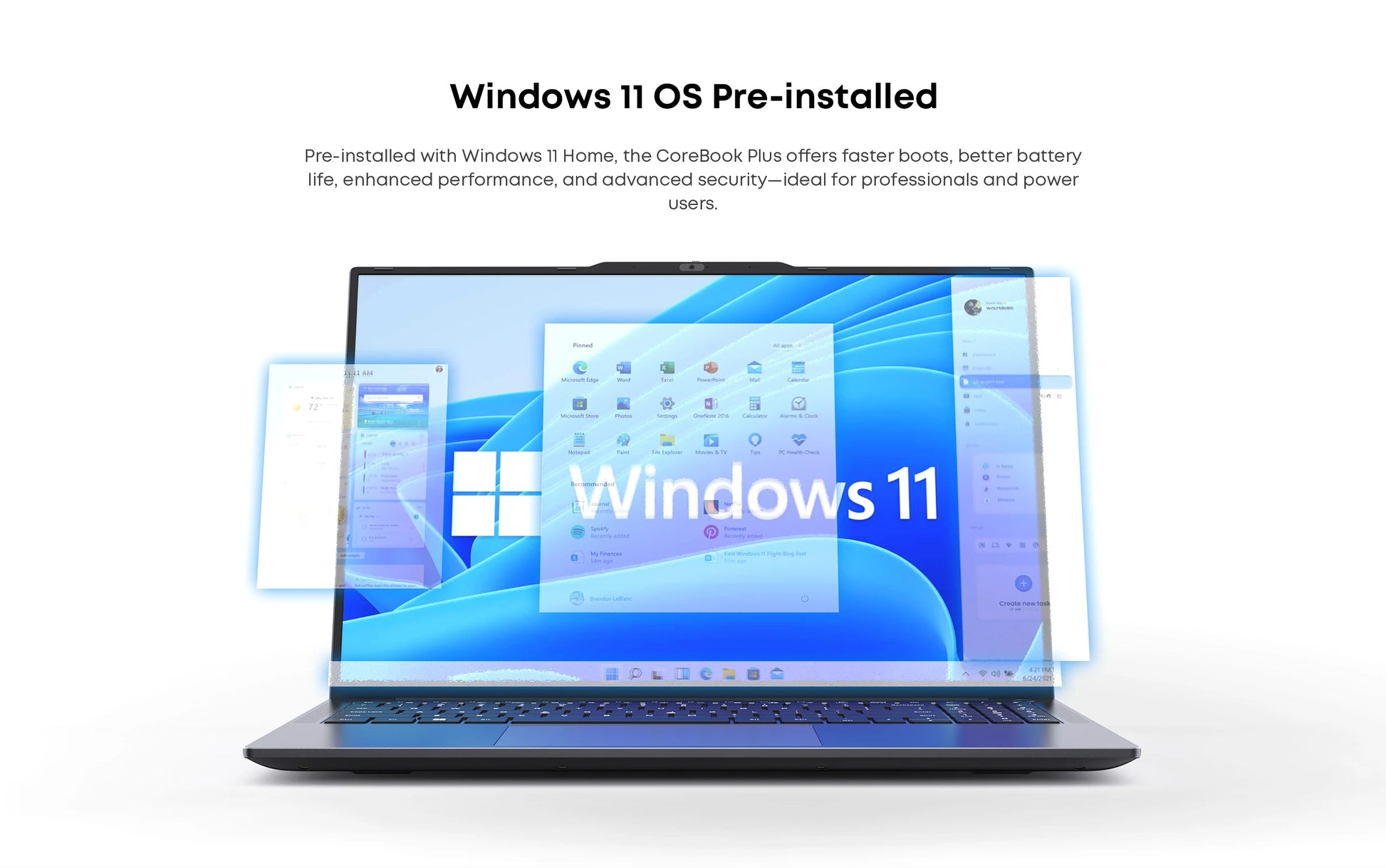 CoreBook Plus is designed with fans for automatic gear speed regulation and a large heat dissipation area to double heat dispersion efficiency.16GB DDR4 high-speed memory,