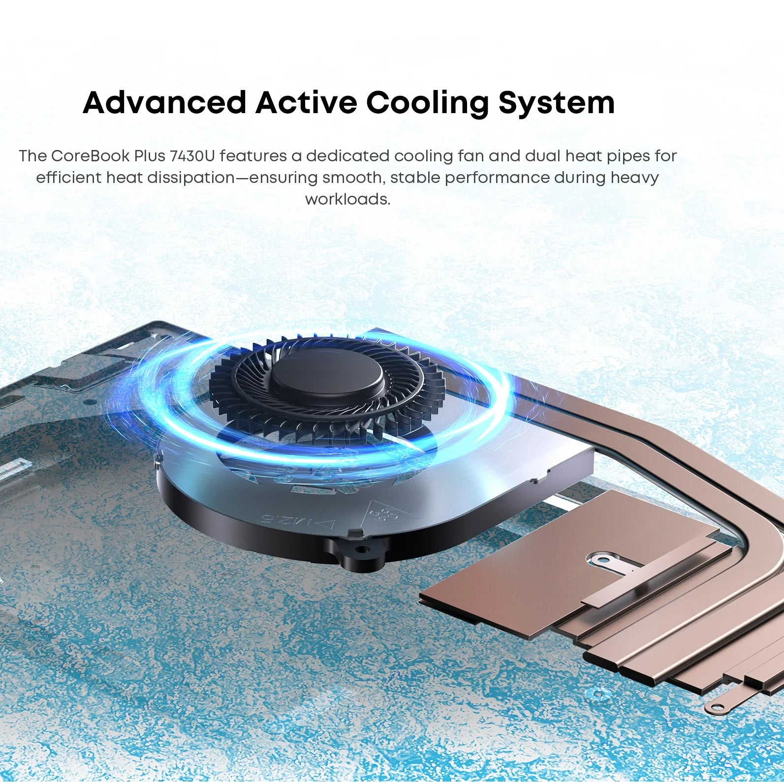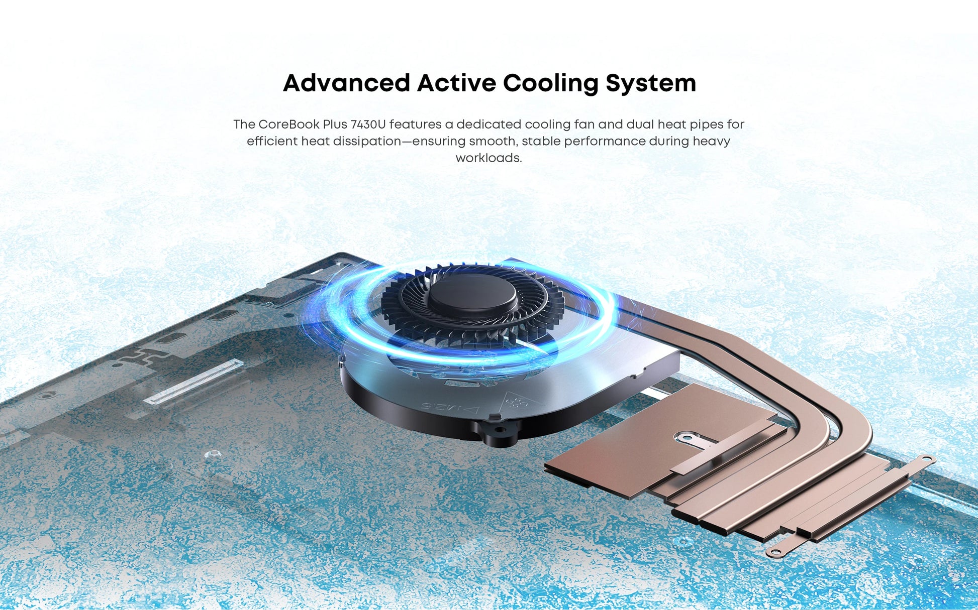 The CoreBook Plus 7430U features a dedicated cooling fan and dual heat pipes forefficient heat dissipation-ensuring smooth, stable performance during heavyworkloads.