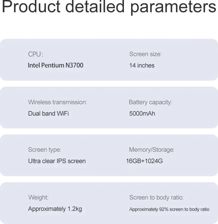 LENO Ultra Slim 14.1"Laptop 16GB RAM 2TB SSD Windows 11 Intel N3700 Notebook Gamer 1920*1080 Display Office Study Computer PC